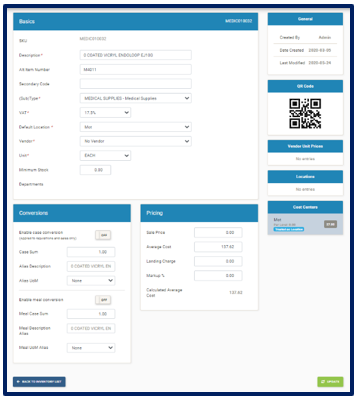 button and the Inventory List is displayed:Search for items by SKU, by Description or by QEH Code