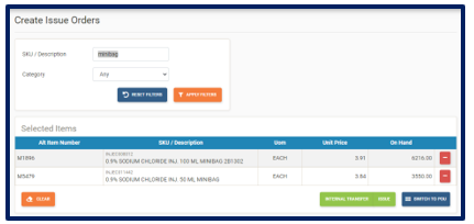 and the Create Issue Order page is displayed:Search for items by SKU, by Description or by QEH item code