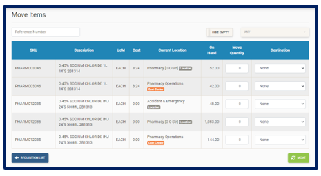 Hide Empty button to show Locations/Cost Centers with zero stock