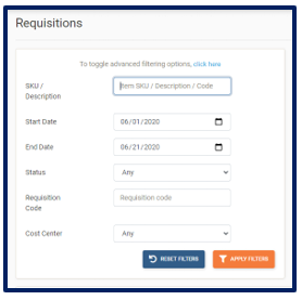 Apply Filters button to search for items